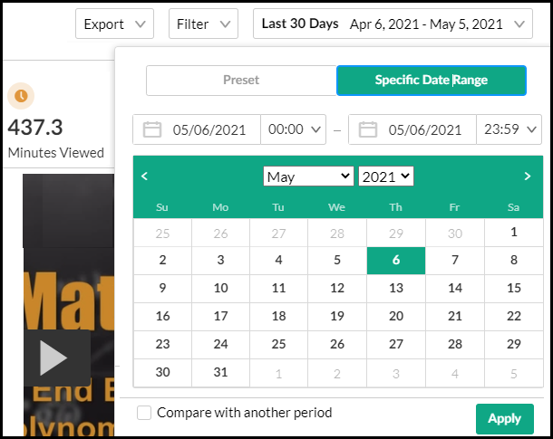 - In the General Metrics Average Score field, you can view the average score of all the users that have taken the quiz until now. Use the drop-down menu to set the time period for the analytics information.